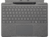 Cet étui de protection Microsoft Surface Pro en disposition AZERTY en finition platine est compatible avec les tablettes Microsoft Surface Pro 8, 9, X et 11. En plus de conserver ta tablette à l’abri des rayures et des chocs, cet étui la transforme en ordinateur lorsque tu la clipses magnétiquement à la tablette. Fabriqué en Alcantara, un textile synthétique résistant, l’étui possède un aspect similaire au cuir suède. Le Slim Pen est inclus, afin de faciliter ta prise de note et booster ta créativité.