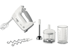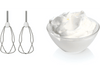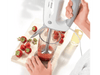 Le batteur est livré avec plusieurs accessoires qui permettent de réaliser de nombreuses préparations culinaires. Il y a 2 fouets pour battre les blancs d'œufs et 2 crochets à pâte pour faire du pain ou de la pâte à pizza. Le gobelet sert à mesurer avec précision les ingrédients liquides. Le hachoir, quant à lui, est l'accessoire idéal pour hacher finement les herbes, les noix ou les légumes ; il est équipé de lames ultra tranchantes en acier inoxydable. Ces outils te permettront de laisser libre cours à ta créativité pour réaliser une variété de recettes, tant salées que sucrées.