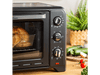 Le four autonome est équipé de trois boutons simples pour une utilisation facile et d'un minuteur convivial de 120 minutes. Son design moderne avec une touche vintage s'intègre parfaitement dans toutes les cuisines, tandis que sa capacité de 33 litres est idéale pour un usage quotidien ou pour des occasions spéciales.