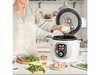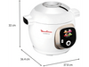 Avec le multicuiseur Cookeo+ de Moulinex de couleur blanche, cuisiner des petits plats variés et délicieux en un rien de temps est un jeu d’enfant. Préprogrammé avec 180 recettes, le multicuiseur t’accompagne étape par étape, pour préparer de succulents repas pour ta petite famille. L'appareil s'utilise en mode manuel ou assisté : avec le mode assisté, il indique sur l'écran quand et comment procéder pour préparer la recette sélectionnée. Grâce à la fonction départ différé, tu peux même programmer un horaire auquel la soupe ou plat devra être prêt : tu n’auras alors plus qu'à te mettre les pieds sous la table. Une fois la cuisson terminée, l'appareil maintient automatiquement les aliments au chaud. Avec une puissance 1600 watts, il est très performant et permet de cuire aussi bien sous pression, à la vapeur, en mode mijotage, cuisson douce, dorage et réchauffage. Ce modèle est livré accompagné d’un panier vapeur pour cuire sainement les légumes et les poissons par exemple. Il est compact et facile à entretenir grâce à sa finition en plastique robuste et aux accessoires qui passent au lave-vaisselle.