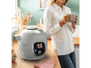 Le Cookeo+ de Moulinex de couleur grise est un multicuiseur polyvalent avec 80 recettes préprogrammées et 2500 supplémentaires sur l'appli "Mon Cookeo". Ses 1600 watts de puissance et son bol mélangeur de 6 litres permettent de régaler jusqu'à 6 personnes. Cet appareil propose 6 modes de cuisson et une fonction maintien au chaud, pouvant durer jusqu'à 1h30. De plus, la protection contre les projections et l'interrupteur instantané offrent une utilisation sécurisée. Pour un nettoyage facile, ses accessoires passent au lave-vaisselle. Enfin, son minuteur intégré facilite la gestion du temps de cuisson.