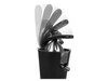 • Charger l'image dans la galerie, Un presse-agrumes noir et argenté, avec plusieurs couvercles en plastique transparent en mouvement, sur fond blanc.