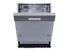 Ce lave-vaisselle semi-encastrable dispose d’un panneau de commande en acier inoxydable situé en haut de la porte qui fait office de poignée. Le reste de la porte est personnalisable à souhait pour qu’il s’insère discrètement dans ta cuisine. Il a des dimensions standards, il passera donc aisément sous n’importe quel plan de travail. Ses pieds ajustables en hauteur permettent de facilement l’installer d’aplomb même sur un sol qui ne l’est pas. À l’intérieur, il dispose de 3 paniers de rangement dont un ajustable en hauteur, et un spécial pour les couverts.
