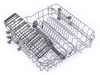 A l'intérieur, ce lave-vaisselle dispose de deux paniers réglables en hauteur et offre un agencement optimal. En haut, un panier flexible avec des barres pour les petites assiettes et la vaisselle fragile est prévu, ainsi qu'un support rabattable pour les tasses et les verres. Le panier inférieur offre de la place pour les assiettes, les casseroles et les poêles et comporte un panier à couverts amovible pratique Le panier inférieur comporte également un bac à détergent doté d'un volet coulissant pratique pour les pastilles de lessive . De plus, il est doté d'un système d'adoucissement de l’eau avec un témoin lumineux qui indique quand tu dois recharger le sel et le liquide de rinçage.
