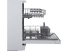 À l'intérieur de l'appareil, tu trouveras deux paniers deux paniers de rangement pratiques. En haut se trouve un panier flexible en hauteur avec des barres pour les petites assiettes, ainsi qu'un support rabattable pour les verres et tasses. Le panier inférieur permet de ranger les assiettes, les casseroles et les poêles et offre un espace pour le panier à couverts amovibles Le lave-vaisselle dispose d'un bac à détergent doté d'un volet coulissant pour les pastilles de lavage. Il est également équipé d'un système d'adoucissement et d'un témoin lumineux qui t’indique lorsqu’il faut remplir le sel.