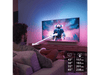 (+) Éclairage d’ambiance : l’Ambilight trois côtés illumine le mur derrière le téléviseur en fonction du contenu, pour une atmosphère immersive.
