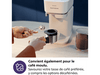 Cette petite machine à expresso est très simple à utiliser et garantit des résultats succulents, tasse après tasse. Il te suffit de presser sur le bouton Expresso ou Lungo, d’enclencher le porte-filtre et Baristina s’occupe du reste. Elle moud les grains de cafés de ton choix à la perfection, tasse le café moulu dans le porte-filtre de façon optimale et prépare des cafés savoureux pour ton plus grand plaisir gustatif. Plus compacte et simple à utiliser qu’une machine manuelle, elle extrait cependant tous les arômes des grains de café et quelques minutes suffisent pour obtenir un succulent café.