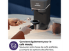 Cette petite machine à expresso est très simple à utiliser et garantit des résultats succulents, tasse après tasse. Il te suffit de presser sur le bouton Expresso ou Lungo, d’enclencher le porte-filtre et Baristina s’occupe du reste. Elle moud les grains de cafés de ton choix à la perfection, tasse le café moulu dans le porte-filtre de façon optimale et prépare des cafés savoureux pour ton plus grand plaisir gustatif. Plus compacte et simple à utiliser qu’une machine manuelle, elle extrait cependant tous les arômes des grains de café et quelques minutes suffisent pour obtenir un succulent café.