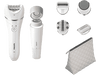 Aucun poil ne résistera à cet épilateur électrique Philips Set de Beauté Série 9000 de couleur blanche. Avec ses 6 embouts pratiques, il te permet d’éliminer tous les poils de toutes les zones de ton corps en douceur. Tu épileras aussi bien tes jambes, que tes aisselles que les petits poils indésirables de ton visage en un rien de temps. La technologie Double Action synchronise les longs disques en céramique en continu pour saisir et éliminer tous les poils même les plus courts de 0,5 mm. Après une séance d’épilation ta peau reste propre et douce pendant des semaines. Cet épilateur fonctionne avec une batterie rechargeable qui t’offre 40 minutes d’autonomie. Tu l’utiliseras aussi bien sur peau sèche que mouillée pour des résultats impeccables à chaque fois. L’appareil a une forme ergonomique idéale qui lui garantit une excellente prise en main. Enfin l’épilateur et ses accessoires se rangent facilement dans la trousse de voyage incluse.