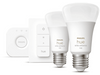 Ce kit de démarrage crée une ambiance conviviale dans ta maison. Le variateur fonctionne sur piles et est entièrement sans fil. Grâce au ruban adhésif ou au support magnétique inclus, tu peux l'accrocher où tu le souhaites, ou alors tu peux l'utiliser comme télécommande. Il gère différentes fonctions : la position marche ou arrêt, la luminosité et diverses ambiances lumineuses. Les lampes offrent plus de 50 000 nuances, de la lumière blanche chaude à la lumière blanche froide. Tu trouveras donc toujours l'atmosphère idéale pour travailler ou te détendre, quelle que soit l'heure de la journée. Le Hue Bridge est le cœur du système et communique à la fois avec tes ampoules intelligentes et avec l'appli Hue. Le kit est compatible avec plusieurs assistants vocaux, tu peux donc contrôler les ampoules avec ta voix. Dans la boîte, tu trouveras 2 ampoules LED intelligentes, le Hue Bridge et un variateur.