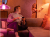 • Charger l'image dans la galerie, Un homme sur un canapé utilise un téléphone, une fille près d'une porte allume une lumière.