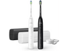 Ce pack de 2 brosses à dents électriques Sonicare 5500 blanche et noire de Philips te permettra de conserver une excellente hygiène buccale. La Sonicare 5500 possède une batterie puissante d’une autonomie de 21 jours, et se recharge en seulement 1h via sa station de charge qui se connecte à un port USB. Afin que tu puisses l’utiliser partout où tu vas, chaque brosse est livrée avec un étui de voyage pratique. La Sonicare 5500 offre un nettoyage en profondeur et élimine sans effort les taches pour un sourire encore plus éclatant. Grâce à sa technologie dernier cri, elle assène plus de 62 000 mouvements de brosse par minute à tes dents pour un nettoyage optimal. Elle est dotée de 2 niveaux d’intensité de brossage et de 2 modes de brossage, le mode Clean qui élimine la plaque dentaire et le mode White qui se concentre sur les taches indésirables.