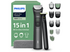 Le multigroom MG9531/15 Series 9000 15-en-1 de Philips en noir t’offre une précision professionnelle pour tailler et styliser ton visage, tes cheveux et ton corps. Avec 15 accessoires, dont une tondeuse de précision et une tondeuse pour le nez et les oreilles, tu ajustes facilement ton style. Pour les travaux de précision, tu disposes alors de la OneBlade incluse. Les lames en acier auto-affûtées restent tranchantes et leurs extrémités arrondies assurent une coupe confortable sans irritation. Sa poignée ergonomique et son fonctionnement sans fil te garantissent un contrôle optimal et une liberté de mouvement totale. Après usage, il te suffit de rincer les accessoires sous le robinet pour un entretien rapide.