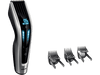 La tondeuse à cheveux HC9450 de la série 9000 de Philips avec sa finition noire et grise et ses 3 sabots de coupe inclus, couper les cheveux de tous les hommes de ta famille est une partie de plaisir. Les sabots motorisés permettent de couper avec précision jusqu’à 400 hauteurs de coupe différentes comprises entre 1 et 42 mm. Tu utiliseras la tondeuse sans sabot, équipée de la technologie DualCut, pour effectuer une tonte très courte de 0,5 mm. Les lames en titane auto-affûtées, plus dures que l'acier, garantissent d'excellentes performances et une coupe précise, jour après jour. Grâce à la fonction turbo, tu coupes avec aisance même les cheveux les plus épais. L’interface digitale tactile permet une sélection facile et un verrouillage sécurisé de la longueur de coupe souhaitée pour des résultats constants et inégalés. Enfin, la puissante batterie Lithium-ion offre jusqu'à 120 minutes d'autonomie après 1 heure de charge seulement.