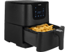 L’airfryer noir de Princess est un appareil puissant avec une large capacité de cuisson de 5,2 l. Équipé de cet appareil, tu réalises un vaste panel de recettes croustillantes, tout en utilisant peu ou pas d’huile selon tes goûts. Avec ses 1700 watts de puissance, il chauffe de 80 à 200°C pour cuire tes frites, croquettes, viandes ou légumes efficacement. Tu le paramètres en quelques clics depuis l’écran digital de contrôle pour choisir le mode de cuisson et la température. Il est équipé d’un minuteur, d’un plateau à graisse amovible pour un entretien facile, ainsi que d’un filtre anti-odeur pratique qui gardera ta cuisine à l’abri des odeurs tenaces de fritures.