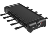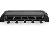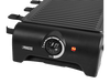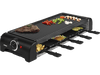 Avec cet appareil à raclette rectangulaire de la marque Princess avec sa finition noire, les soirées raclette seront réussies à coup sûr. Il est livré avec 10 poêlons et spatules pour que chaque invité puisse faire cuire son fromage à sa façon. Ceux qui n’aiment pas le fromage pourront faire cuire des légumes ou de la viande sur la plaque de cuisson située sur le dessus. L’appareil a une puissance de 1500 watts et grâce au bouton rotatif sur le côté tu ajustes aisément la température de chauffe. Chaque convive participera avec plaisir à ce diner convivial à sa façon.