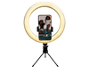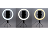 Améliore la qualité de tes photos et de tes vidéos grâce à l'anneau lumineux LED de Qware. Il offre 3 couleurs de lumière différentes (blanc chaud, blanc froid et lumière du jour) avec 10 niveaux de luminosité différents pour chacune d'entre elles. Ainsi, il fournit un éclairage confortable et agréable lorsque tu prends des selfies ou lorsque tu fais du vlogging. La lampe annulaire est livrée avec un trépied stable qui peut pivoter à 360 degrés. Cela te permet d'ajuster facilement l'angle et la position de la lampe pour obtenir l'éclairage souhaité. Le clip de téléphone rotatif te permet également de positionner ton téléphone à n'importe quel angle, que ce soit à l'horizontale, à la verticale, en hauteur ou en contrebas. Comme il est extensible jusqu'à 8 cm, il est compatible avec la plupart des smartphones, avec ou sans étui.