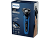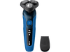 Ce rasoir électrique sans fil S-5466 de couleur bleue et noire de Philips te garantit au quotidien un rasage facile, propre et confortable. Il ne pèse que 400 grammes et bénéficie d’une forme ergonomique agréable avec une finition en caoutchouc qui tient bien dans la main. 100 % étanche, il s’utilise aussi bien sur peau humide que sèche et même sous la douche. Les lames auto-affûtées des 3 têtes de rasage garantissent un rasage de près efficace et un confort optimal de la peau. Les têtes entièrement flexibles peuvent pivoter jusqu’à 360° pour épouser les courbes de ton visage à la perfection. Grâce à la tondeuse rétractable, tu finis avec précision ta moustache et tes pattes. De plus, tu ouvres la tête de rasage d’un seul clic pour la nettoyer sous l’eau du robinet. Enfin, la batterie performante se charge en 1 heure et offre 45 minutes d’autonomie. Cependant 5 minutes de charge suffisent pour bénéficier de 15 minutes d’utilisation supplémentaire. Ce rasoir sans fil pratique et facile à utiliser t’accompagnera partout où tu iras pour que tu sois toujours rasé de près.