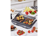 Envie d’un BBQ mais pas de terrasse ou de balcon à disposition ? Avec cette plancha électrique Twin Zone noire de Riviera & Bar, tu fais griller des brochettes, des steaks et des légumes en un tour de main depuis le confort de ta cuisine pour régaler tes invités. Cet appareil dispose d’une surface de cuisson antiadhésive totale de 53, 5 x 33 cm, répartie en 2 avec d’un côté une plaque plate et de l’autre une plaque ondulée, idéale pour marquer les steaks. Les planches sont amovibles pour un nettoyage facile. La plancha dispose aussi d’un bac de récupération des jus et graisse pratique. L’appareil a une puissance de 2300 watts et chaque zone s’opère indépendamment de sorte que tu ajustes la température de chaque plaque aux ingrédients que tu souhaites cuire. Avec cette plancha portable, faire griller des légumes, de la viande ou de la viande est un jeu d’enfant.