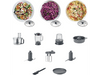 | Accessoires inclus | Bol (2.1 l) / Blender (1.2 l) / Double fouet / Hachoir / Disque réversible gros / Disque réversible fin / Presse-agrumes / Pétrin |