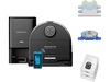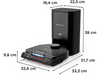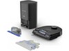 Aspirateur robot / Réservoir d'eau vibrant avec contrôle électronique du niveau d'eau / Serpillère standard blanche et grise pour tous les sols / Serpillère blanche et bleue pour les taches tenaces / Serpillère blanche et verte à utiliser sans eau pour éliminer les particules fines grâce à l'action électrostatique / Station de vidange pour vidange automatique du bac à poussière du robot aspirateur / 3 sacs Hygiène+ / Manuel