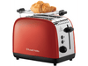 Le grille-pain rouge Russel Hobbs Colours Plus+ prépare des toasts délicieusement croustillants en un rien de temps. Il a un look coloré et offre de nombreuses fonctions pour faciliter ton petit-déjeuner. Par exemple, il est doté de 2 fentes à pain extra-larges, adaptées aux tranches épaisses ou fines. Il est équipé de boutons de décongélation, d'éjection et de réchauffage, ainsi que d’un bouton rotatif pour le réglage du degré de brunissement adapté à ton goût. Tes pains grillés sont automatiquement centrés de manière optimale et, grâce à la fonction de surélévation du pain, tu les sors de l'appareil en toute sécurité. Enfin, tu disposes d'un réchauffe qui permet de garder les viennoiseries bien au chaud, et d'un tiroir ramasse-miettes amovible pour faciliter le nettoyage.