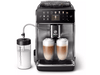 Avec son format compact de L26 x H49 x P38 cm, cette machine GranAroma de couleur noire trouvera sans aucun doute une place dans votre cuisine. Elle comporte deux réservoirs : un, amovible, de 1.8 litres pour l’eau et un de 600 ml pour le lait. Vous stockez les grains de café dans le compartiment d’une capacité de 300 grammes sur le dessus. La machine vous permet d’insérez aussi bien des grains que du café moulu, pour varier les goûts de vos cafés. Vous ajustez également la taille de la tasse et vous pouvez préparer 2 tasses simultanément.