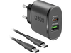 Ce chargeur de la marque SBS en noir est puissant et polyvalent, avec un port USB-C (20W) et un port USB-A (18W), ce qui te permet de recharger 2 appareils en même temps. Grâce aux technologies Power Delivery et Quick Charge, il charge les appareils compatibles à la vitesse de l'éclair. Il convient aux smartphones, aux tablettes ainsi qu'à d'autres appareils USB. De plus, un câble USB-C de 1,5 mètre est inclus pour plus de commodité.