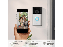 La sonnette vidéo intelligente à batterie argentée en finition satin nickel de Ring te permet de voir qui se trouve à ta porte et d’y répondre, que tu sois chez toi ou non. Cet appareil à l’installation facile ajoutera une couche de sécurité supplémentaire pour protéger ta maison.