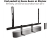 Le SOUND 3550 s'adapte facilement aux barres de son de toutes dimensions et formes, telles que Sonos Beam, Sonos Playbar et Bose. En outre, cette fixation universelle pour barre de son a été réalisée en acier noir et aluminium de première qualité pour une finition durable.