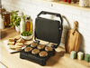 Tefal a conçu ce gril multifonctionnel pour les familles qui aiment les grillades. Sa grande taille et sa surface de cuisson rainurée de 29 x 26 cm permettent de cuire facilement 4 steaks savoureux ou 2 paninis. Tu peux y cuire aussi bien de la viande que des légumes ou des sandwiches. Avec son design moderne et sa finition noire et acier, il est facile à nettoyer. Il est doté d'une poignée robuste pour presser les paninis et d'un crochet pour maintenir les deux parties du gril ensemble lorsque tu y places des aliments plus épais.
