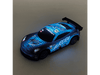 • Charger l'image dans la galerie, Voiture de course jouet bleue avec détails rouges et logos de sponsors, sur fond noir.